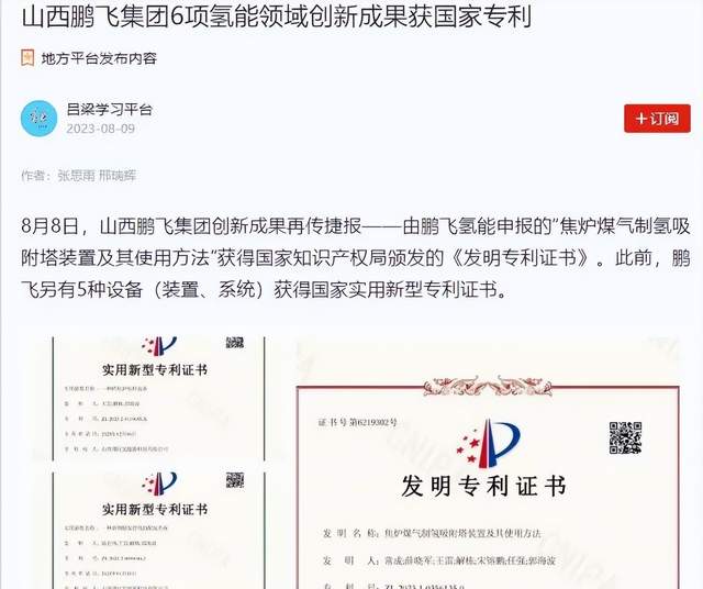 8月8日,由im电竞电子竞技平台氢能申报的“焦炉煤气制氢吸附塔装置及其使用方法”获得国家知识产权局颁发的《发明专利证书》。学习强国,中国能源网、吕梁日报、化工报等一线主流媒体关注报道,展示了im电竞电子竞技平台在氢能领域的不断创新突破。