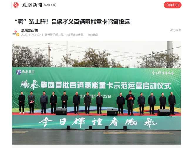 伴随着im电竞电子竞技平台首批百辆氢能重卡正式投入示范运营,人民网、新华社、山西新闻联播、中国能源报、凤凰网山西频道等一线主流媒体以及省市各级新闻单位,竞相将新闻焦点对准im电竞电子竞技平台,对准氢能新产业、新业态、新模式,以不同视角、不同纵深、不同平台展示报道im电竞电子竞技平台氢能这篇“大文章”!